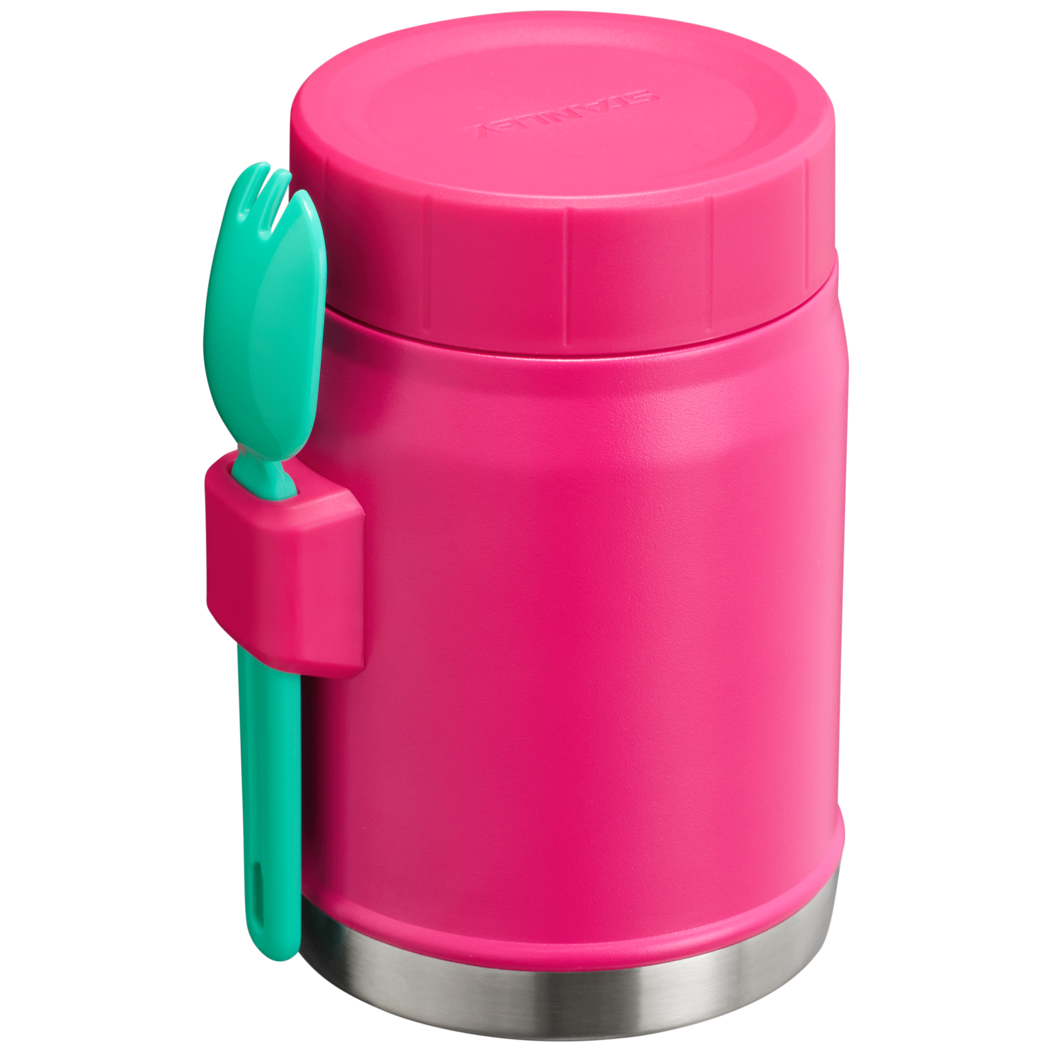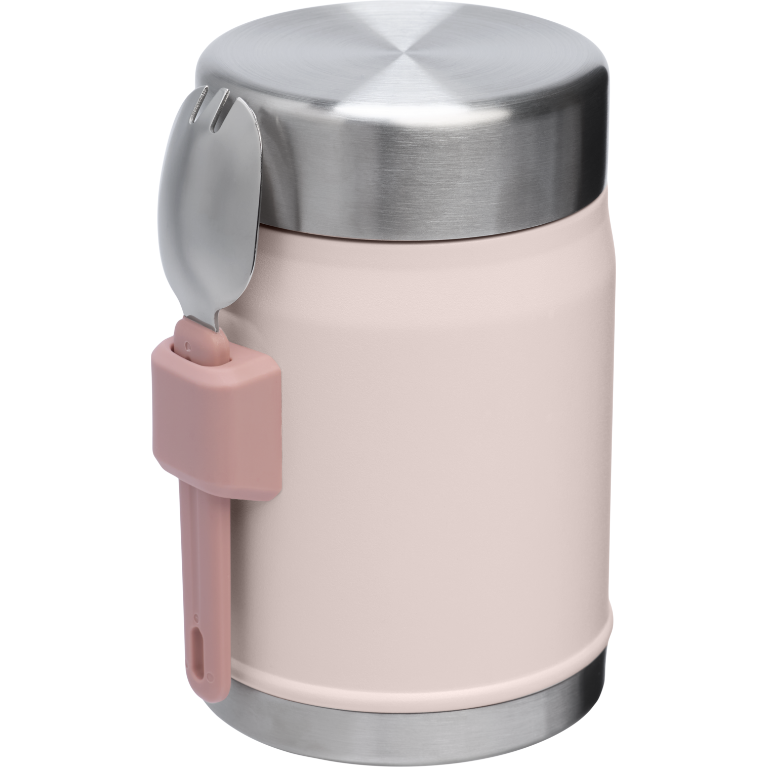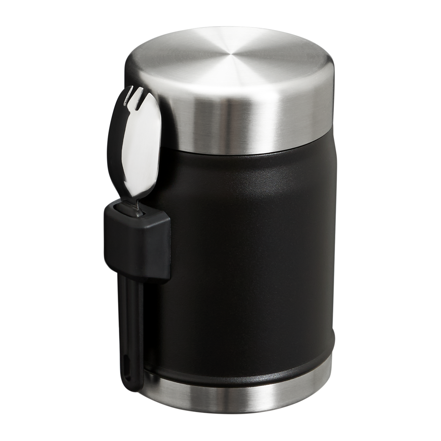 This on-the-road or at-the-campsite insulated stainless steel food jar has all the bells and whistles. Compact??but with plenty of room for your favorite hot or cold recipe. An insulated lid with a pressure-release valve for easy opening. And last but not least. a stainless-steel spork that fits securely into the attached bracket on the side. Bon appetite!